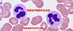 NEUTRÓFILOS: São células sanguíneas leucocitárias que fazem parte essencial do sistema inato. Pertencem a classe dos granulócitos, junto aos eosinófilos e basófilos, pois apresentam núcleos lobulares e contêm grânulos citoplasmáticos. Estão envolvidos na defesa contra bactérias, fungos, vírus e partículas.