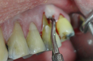 No início da profilaxia pré-cirúrgica, com as pontas de ultrassom, podemos demonstrar a paciente a necessidade do procedimento indicado. Os dentes praticamente seriam removidos apenas com uma profilaxia rigorosa. Em certos casos, e dependendo dos pacientes, é importante mostrar as alterações patológicas, assim como documentar os procedimentos, que forem realizados. Os dentes foram extraídos, pois, estavam condenados. Apaciente não usava, pois estavam moles e doíam.